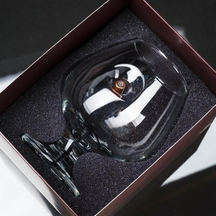 Бокал для коньяка "Непробиваемый" с пулей в картонной коробке.